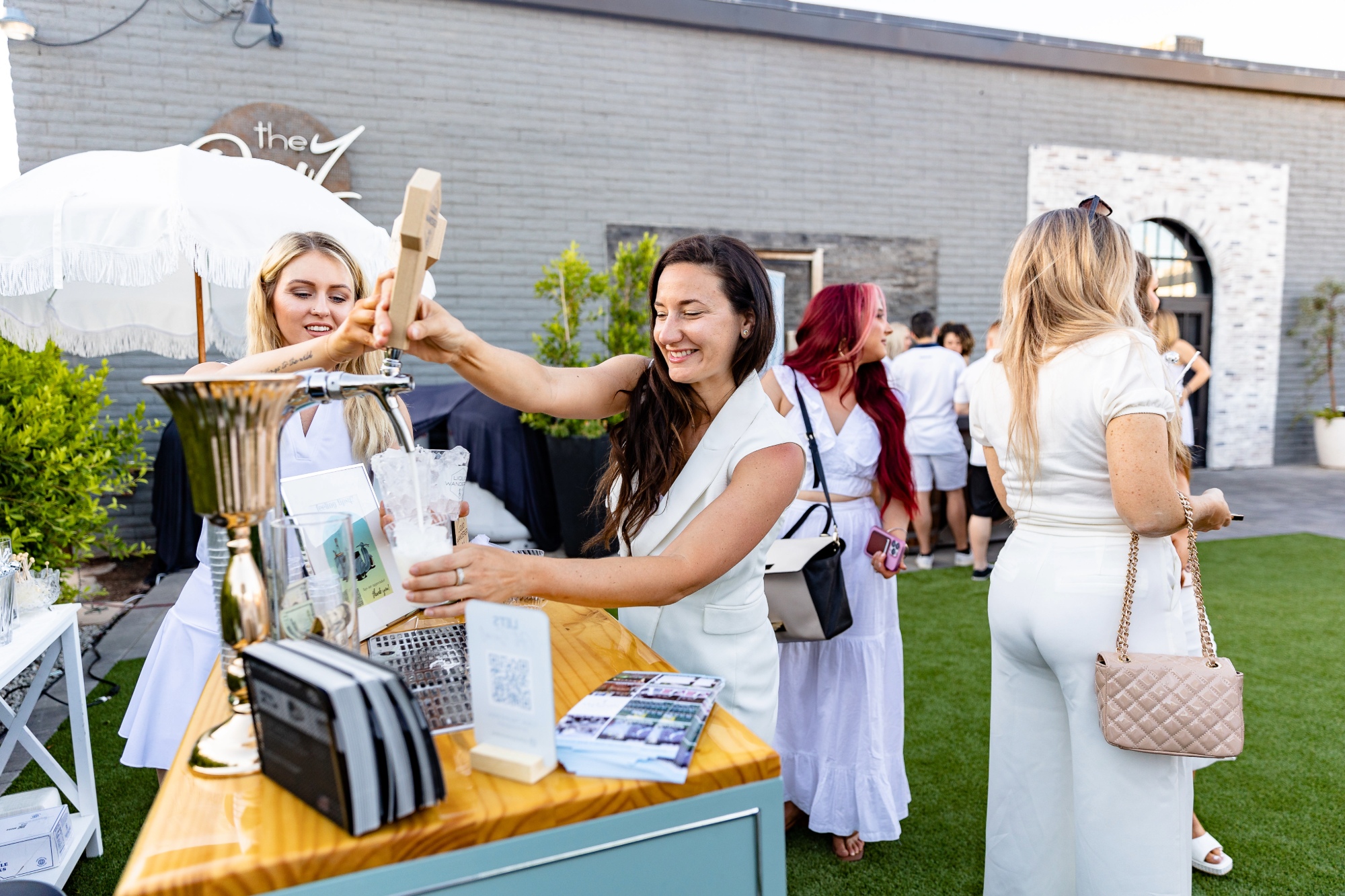 Welcome to The Dauz – A Versatile Modern Venue in Downtown Phoenix! The Dauz is a unique indoor/outdoor event venue that blends modern aesthetics with industrial character, located in the heart of Downtown Phoenix. With over 5,500 square feet of flexible interior space and a large, modern courtyard, The Dauz is ideal for weddings, corporate gatherings, social celebrations, styled shoots, and community events. The outdoor courtyard features turf landscaping, a white architectural wall, custom fountain, hedge wall, planters, artistic gate, and twinkle lights—creating a warm and stylish backdrop for ceremonies, cocktail hours, food truck setups, vendor activations, and more. It comfortably seats up to 350-400 guests. Inside, the venue offers a polished, blank canvas with 18- to 24-foot white ceilings, white brick walls, black support beams, and refinished charcoal-stained concrete floors that are perfect for dancing. The industrial-modern look is accented by 12 dimmable black chandeliers and thoughtful architectural details throughout. Rental includes a wide inventory of furniture and decor, including 20 charcoal farm tables, 300 cross-back chairs, 12 modern cocktail tables, lounge furniture, rugs, arches, a 20-foot rolling bar, 10 folding tables, 10 72-inch round tables, a refrigerator, freezer, and prep and storage space totaling 500 square feet. Seasonal and holiday decor is also available to elevate your design. The venue features spacious restrooms with five stalls for women and three stalls plus two urinals for men. A custom communal sink, created by a local doctor and friend of the owners, adds a unique artistic touch. Many details throughout the space have been thoughtfully repurposed from the original 1960s structure, preserving the building’s industrial roots while elevating it for modern events. The Dauz has hosted a wide range of events, including weddings, corporate parties, proms, indoor and outdoor markets, graduation celebrations, birthday parties, baby showers, and private industry mixers. On-site parking is available and often doubles as an extension of the event space—previously hosting food trucks, BBQ vendors, petting zoos, car shows, sparkler exits, motorcycle rallies, and more. A new speakeasy lounge is coming soon to expand the experience even further.